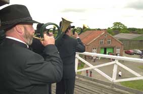 Für den musikalischen Rahmen des Mühlentages sorgte der vereinseigene Spielmannszug unter der Leitung von Katja Weege mit schwungvollen Rhythmen. Mit dem Hubertusmarsch und anderen Jägermärschen, gespielt von der Galerie der Mühle, begeisterten die Bläser der Jagdhornbläsergruppe Wittmund-Nord unter der Leitung von Dirk Ennen. Außerdem überbrachte auch der Spielmannszug des Schützenvereins Negenmeerten unter der Leitung von Anna Kerl den Schweindorfern einen musikalischen Überraschungsgruß. |